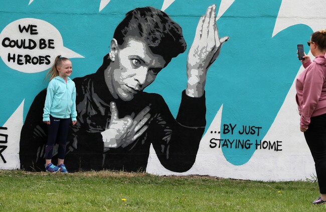 coronavirus-fri-may-8-2020 Artwork by children of Gardaí on the wall in Finglas Garda Station. PA PA