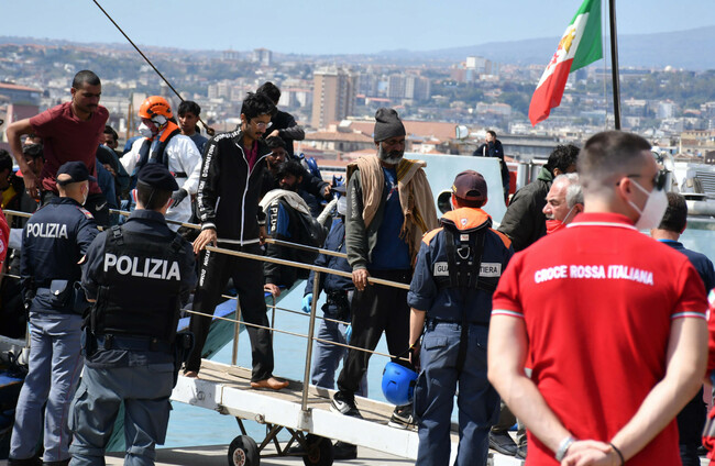 Migrants disembark after their arrival in the port of Catania, Italy Orietta Scardino