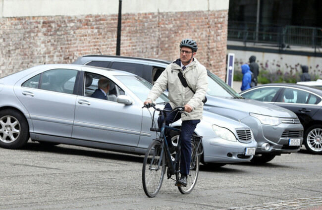 Ryan arriving to Dublin Castle for a cabinet meeting on his bike on the same day O'Donoghue made his claims. Leah Farrell