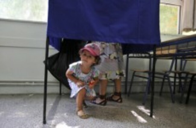 A polling booth in Greece earlier today. Nikolas Giakoumidis/AP/Press Association Images