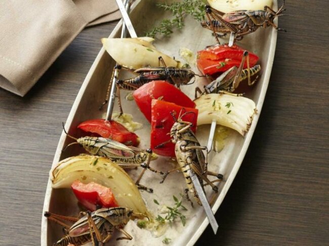 Spiders not to your liking? You could enjoy a grasshopper shish kebab instead.