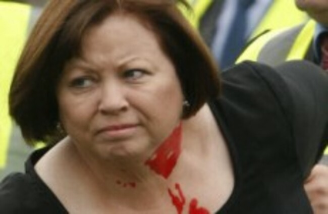 Last week, Harney was splattered with red paint as she turned the sod on a new health centre in Ballyfermot, Dublin. A Dublin city councillor subsequently admitting throwing the paint.