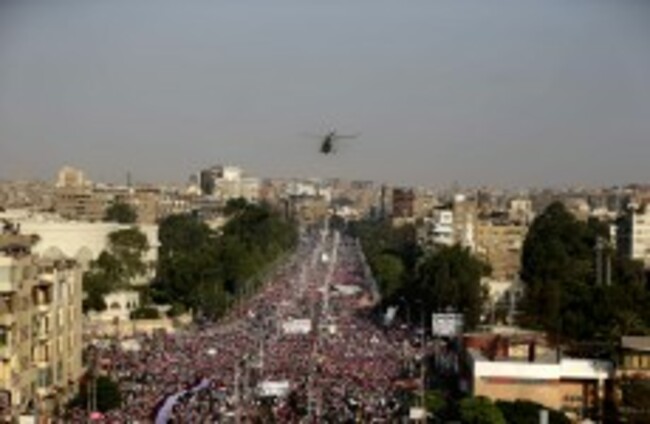 A military helicopter files over the presidential palace as opponents of Egypt's Islamist President Mohammed Morsi protest in Cairo, Egypt today. Hassan Ammar/AP/PA