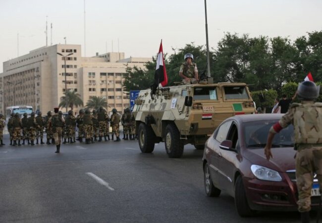 Egyptian army soldiers stand guard in front of a military base, in Cairo ( Hassan Ammar/AP/PA).
