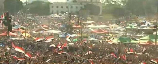 (Supporters of Mohammed Morsi celebrate in Tahrir Square after the result is announced. Screengrab via Al Jazeera English)