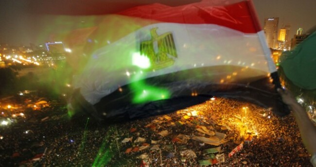 An Egyptian waves a national flag over Tahrir Square as people celebrate the election of Mohammed Morsi. Amr Nabil/AP