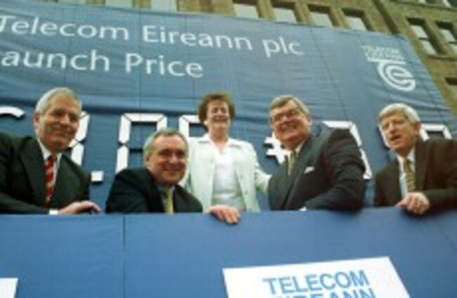 Fianna Fail figures at the original Telecom Eireann share posting Graham Hughes/Photocall Ireland