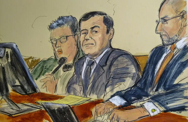 A courtroom sketch of Joaquin "El Chapo" Guzman.