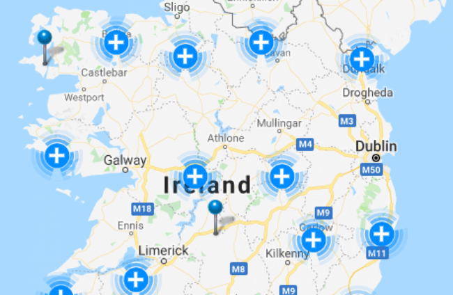 A map showing areas where power is down across the country. ESB