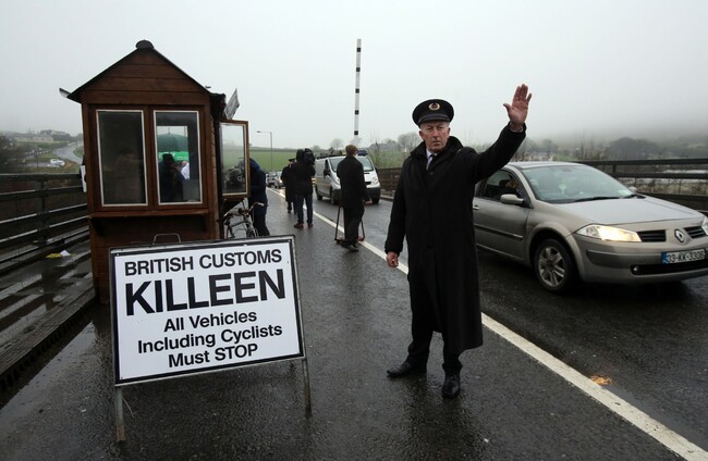 A mock customs post set up by anti-Brexit campaigners at Ravensdale, Co Louth. Niall Carson/PA Images