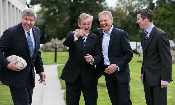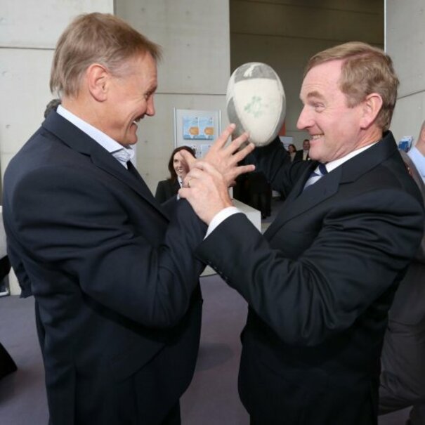 The offender was none other than Ireland rugby boss Joe Schmidt as the pair posed for pictures at the Irish Management Institute in Dublin today where they spoke to business leaders.