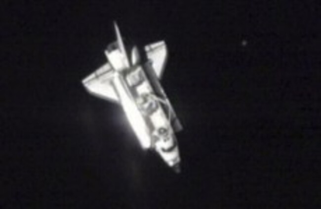 A photo made from NASA video shows Endeavour over the western Pacific as it approached the ISS today. AP Photo/NASA