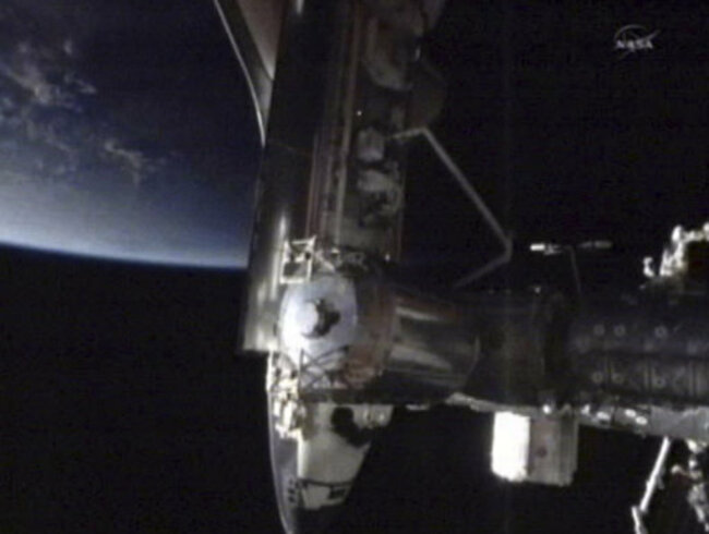 [caption id="attachment_138697" align="alignnone" width="512" caption="A photo made from NASA video shows the Endeavour docked on the Harmony node of the ISS today. (AP Photo/NASA)"][/caption]