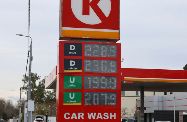 Fuel prices at their peak in Ireland last week on 23 March before Government intervention - diesel is now sitting at around €2.07 per litre. Alamy Stock Photo