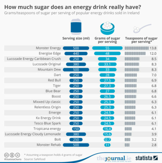 Some of the drinks on the Irish market contain as many as 16 teaspoons of sugar.