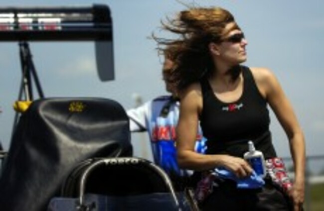 Top Fuel points leader Melanie Troxel stands next to her car AP Photo/Topeka Capital-Journal, Mike Burley