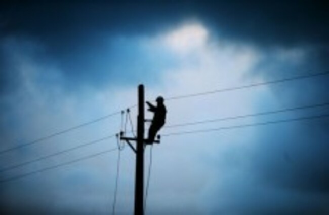 ESB worker Shane McGowan works on a telegraph pole in the area of Drumcliffe, Co. Sligo. PA Wire/Press Association Images