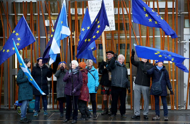 Pro-European protestors outside the Scottish Parliament, Edinburgh, as a vote is held against Theresa May's proposed Brexit deal. PA Wire/PA Images