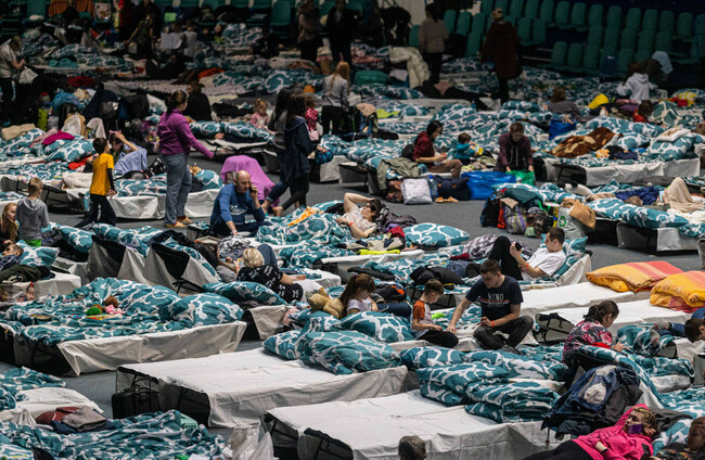 A reception point for refugees from Ukraine organized in a sports hall in Wroclaw, Poland Krzysztof Kaniewski via PA Images