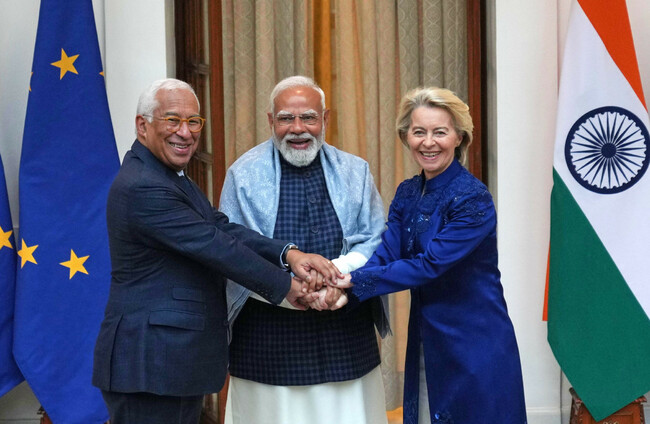 European Commission President Ursula von der Leyen and European Council President Antonio Costa met with Indian Prime Minister  Narendra Modi in New Delhi today to finalise the agreement.