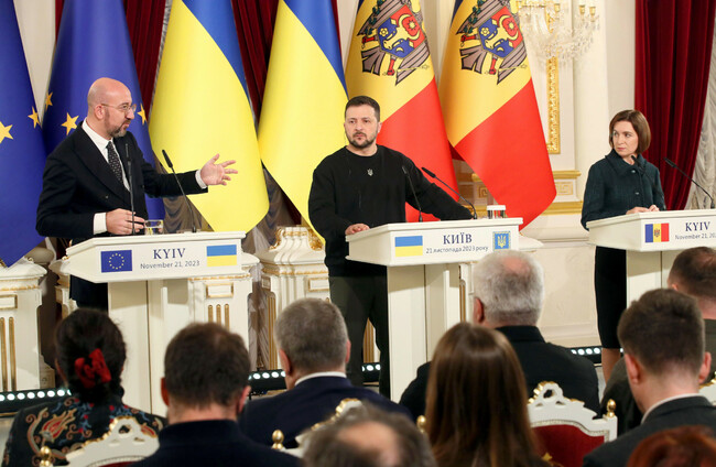 Presidents of Ukraine and Moldova with Charles Michel, President of the European Council last month. Alamy Stock Photo