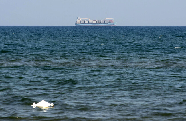 The Alexander Maersk merchant vessel, believed to be carrying over 100 migrants rescued at sea, last week. Santino Galazzo