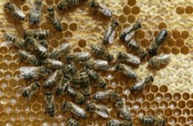 Honey bees sit on a honeycomb. AP Photo/Heribert Proepper