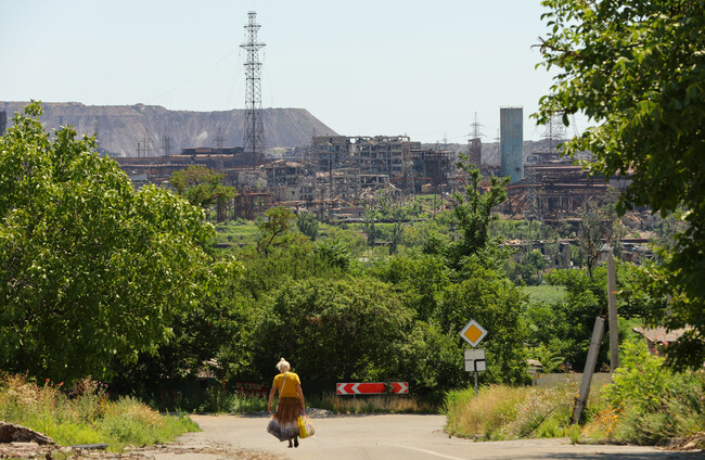 A resident walks near the Azovstal steel plant in Mariupol on 15 July 2022 Xinhua News Agency/PA Images