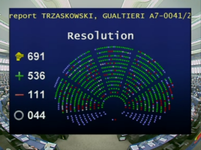 Members voted by 536 to 111 to reallocate the number of seats to individual countries, to make room for Croatia.
