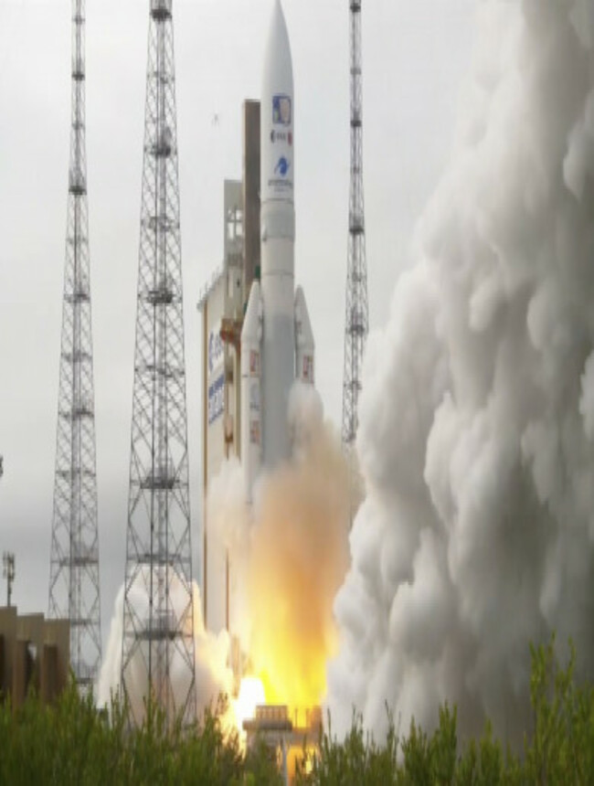 The launch on an Ariane 5 rocket from Europe’s spaceport in Kourou, French Guiana, came after a previous attempt yesterday was called off due to the risk of lightning.