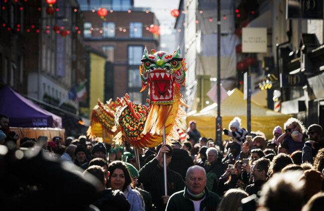The Dragon of the Lung Ying Academy of the Shaolin Buddhist Temple Slane during the Dublin Lunar New Year Festival on Drury Street Dublin. DublinTown, Dublin City Council. Andres Poveda