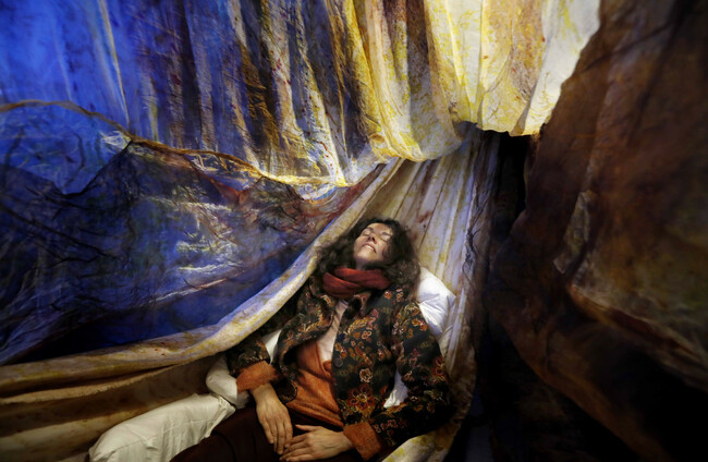Sophie Riev resting in Alex Cecchetti's work 'Medusa Mothers', as part of IMMA's new Take a Breath exhibition. Mark Stedman
