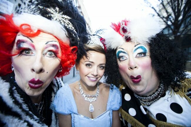 Cinderella, played by Stephanie McKeon, with the two ugly sisters played by Joe Conlon and Gary Mountaine as they launched the Gaiety Panto Cinderella in association with Tayto. Cinderella will run from 2 December 2012 to 13 January 2013. See www.gaietytheatre.ie for more details. (Photo: Leon Farrell/Photocall Ireland)