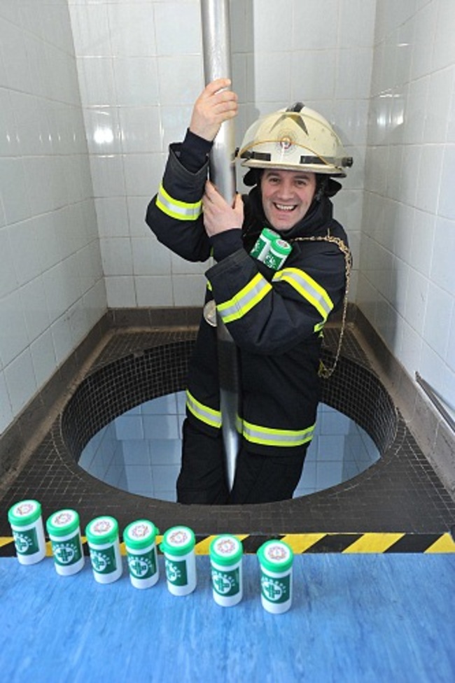 Who’s this? Why it’s only the Lord Mayor of Dublin at the Dublin Fire Brigade Message in a Bottle launch. See, you can wear your mayoral chain over a fire suit! Message in a Bottle is a scheme which encourages people to keep their personal and medical details in a container which is stored in the fridge.
