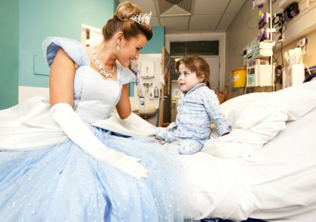 Stephanie McKeon as Cinderella from the Gaiety Panto Cinderella meets with Laura Doyle (aged 5) from Longford, at Temple Street University Children’s Hospital. The panto Cinderella, in association with Tayto, will run from 2 December 2012 -13 January 2013. Photo:Leon Farrell/Photocall Ireland.