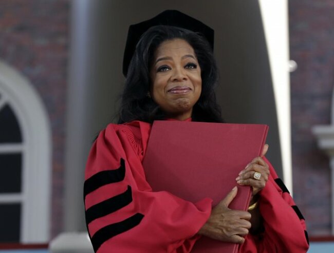 Arise, Dr Winfrey. An emotional Oprah sheds a tear after she receives an honorary doctorate from Harvard University during commencement ceremonies in Cambridge, Massachusetts. (Elise Amendola/AP)