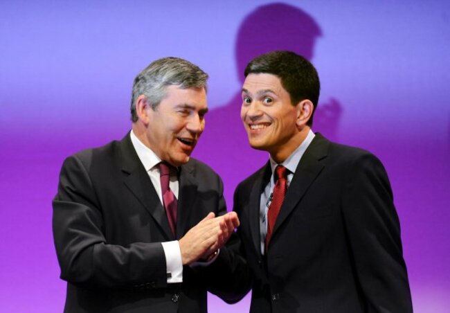 • This picture of the former British Prime Minister Gordon Brown and his one-time favoured successor David Miliband who surprisingly quit politics today. Still, he does a mean cheesy grin: