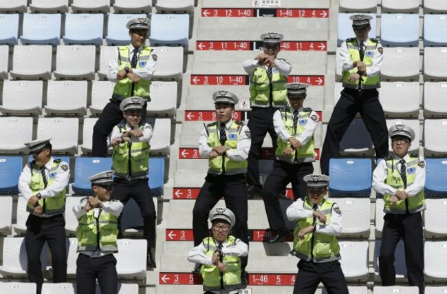 • Here are police officers in South Korea doing the Gangnam Style dance in the stands ahead of the Korean Grand Prix for no apparent reason: