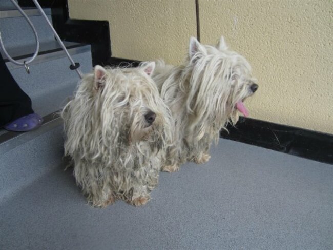 • The ISPCA sent us these photos of two West Highland Terriers in Portlaise whose coats had been left neglected, leaving them matted and unkempt. The dogs, AJ and Skully, got their much-needed haircuts (and a good wash) and are now back to their old, slightly-less-furry selves. Aw.