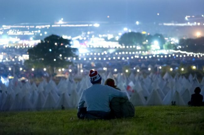 Festival goers wait for the sun to rise early this morning at the Glastonbury festival in Somerset in England. (Photo: Matt Crossick/Empics Entertainment)