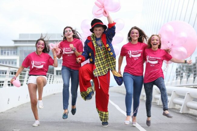 Hold up folks, the Olympics don’t start until the weekend after next… Breast Cancer Ireland supporters Megan Hurley, Caoimhe Dunne, James Bulter, Nicola Hurley and Kate Tighe  get into the spirit at the launch of this year’s Great Pink Run at the Point Village. (Image by Jason Clarke Photography.)