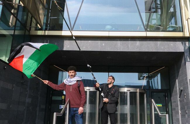 Protesters from the Ireland-Palestine Solidarity Campaign (IPSC) staged a demonstration inside the Central Bank over Israeli bonds Sasko Lazarov