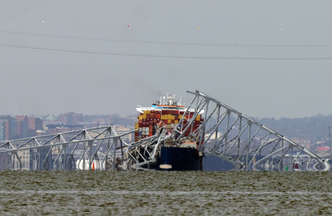 featureimage A container ship rests against wreckage of the Francis Scott Key Bridge (Mark Schiefelbein/AP)