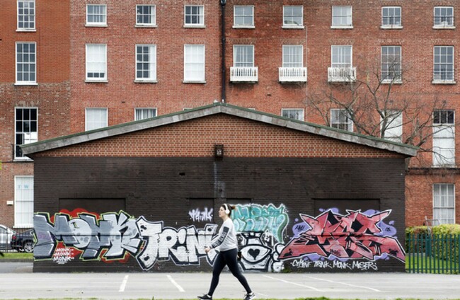 A woman walks through Mountjoy Square. Leon Farrell/Rollingnews.ie