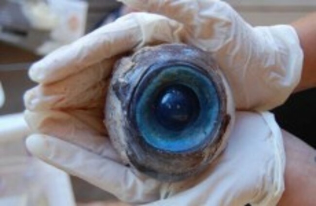 DNA testing still needs to be done to confirm that the eye came from a swordfish.