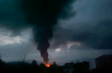 Smoke rises after a fuel depot explosion near Stepanakert (Siranush Sargsyan’s Twitter) PA