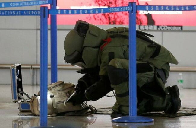 A BLAST CAUSED by “homemade” explosives has injured four people and sparked a major security alert at the main international airport in Shanghai, China.