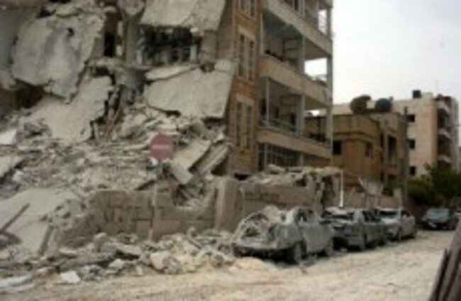 Syria’s pro-government al-Ekhbariya TV aired footage of the aftermath from the blasts, showing torn flesh, smashed cars, twisted debris and blood stains on the pavement. The force of the explosions tore the facade off one multistory building, shattered windows in the area and sent debris flying for hundreds of metres. Pro-government websites said five buildings damaged.