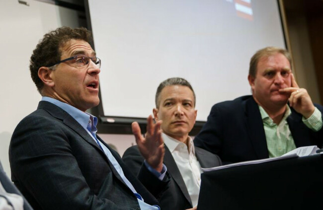 Elliot Schrage (far left) pictured at a conference at Stanford University in May. orla