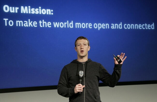 Facebook CEO Mark Zuckerberg with the company's mission statement in 2013 AP Photo/Jeff Chiu